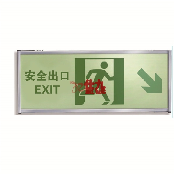 > 劳保 安全 消防 标识 > 逃生疏散指引 > 逃生疏散标识 > 安赛瑞 SAFEWARE 20127 悬挂式双面自发光疏散标识(紧急出口向右下角)铝合金边框+自发光板,330×120mm,中英文 - 相关商品:
