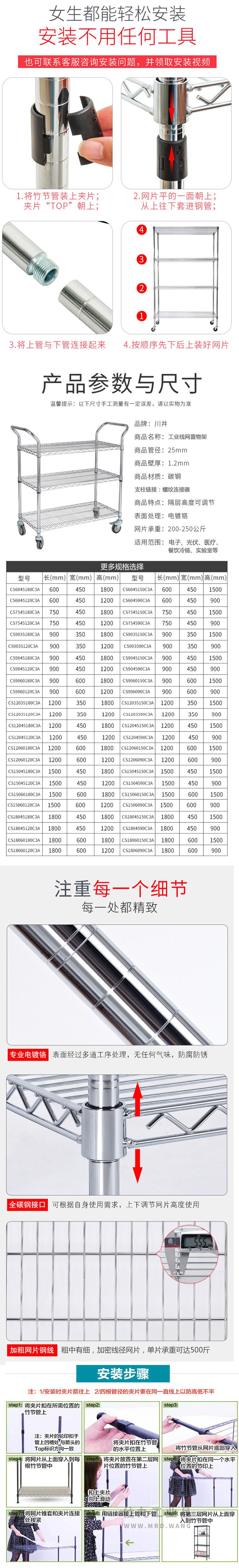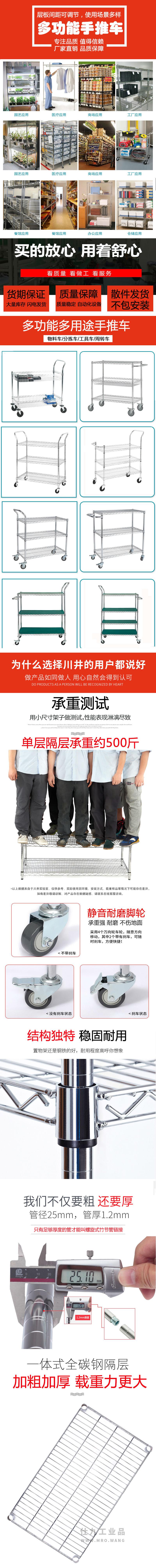 三层双弯把手推车(配PU插杆轮,900及以下配3寸轮,900以上配4寸轮)890下管