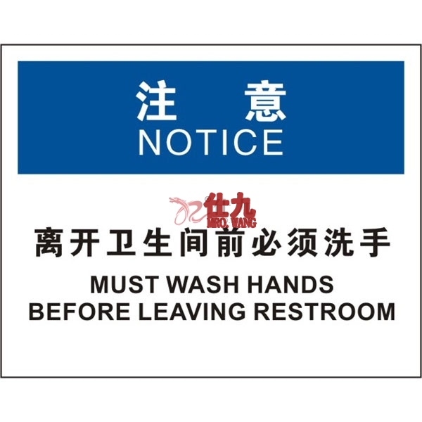 > 劳保 安全 消防 标识 > 安全标识 > OSHA安全标识 > 安赛瑞 SAFEWARE 31710 清洁卫生标识(注意离开卫生间前必须洗手)1.5mm厚ABS工程塑料板,250mm(W)×315mm(H),中英文 - 相关商品: