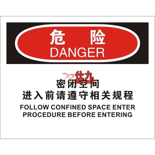 > 劳保 安全 消防 标识 > 安全标识 > OSHA安全标识 > 安赛瑞 SAFEWARE 31250 密闭空间标识(危险密闭空间进入前请遵守相关规程)高性能不干胶,250mm(W)×315mm(H),中英文 - 相关商品: